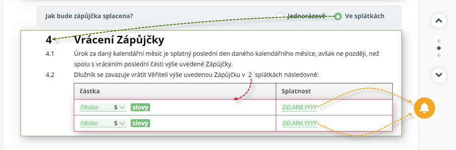 Legito umožňuje největší flexibilitu, ale přitom i jistotu v rámci změny či úpravy přednastavených smluv, s jakou jsem se v rámci výše jmenovaných programů setkala. Jejich chytré dokumenty jsou jedinečné a kombinují přednastavené podmínky, které při splnění změní celý text smlouvy. Ve vzoru lze například nastavit dvě možnosti pro vrácení zápůjčky – jednorázová platba a platba na splátky. Při generování konkrétní smlouvy se podle zaškrtnuté platby na splátky vloží všechny přednastavené ustavení k této platbě.